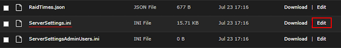 Edit” for the “ServerSettings.ini” file.